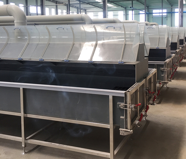 电池化成系统由电池上线、电池下线。活动小车及多列化成线组成。活动链板采用PP或聚甲醛材料制作,化成水槽采用PP或PVC材料制作,耐强酸碱。所有支架采用耐腐蚀不锈钢制作。